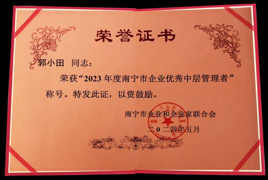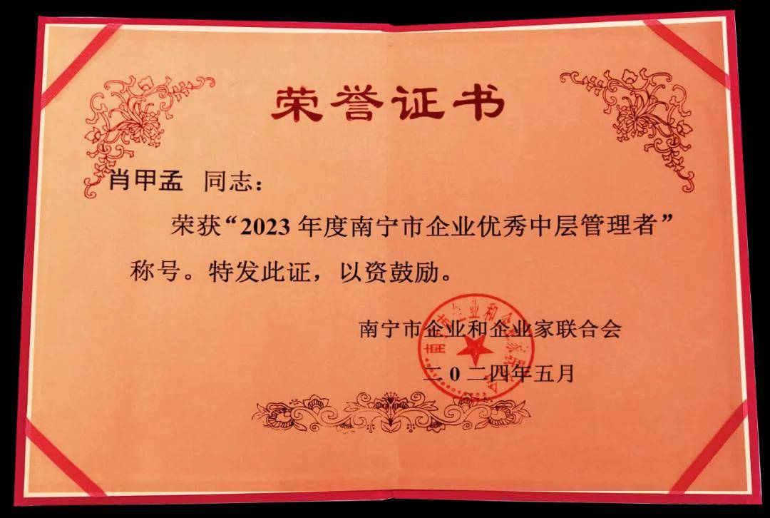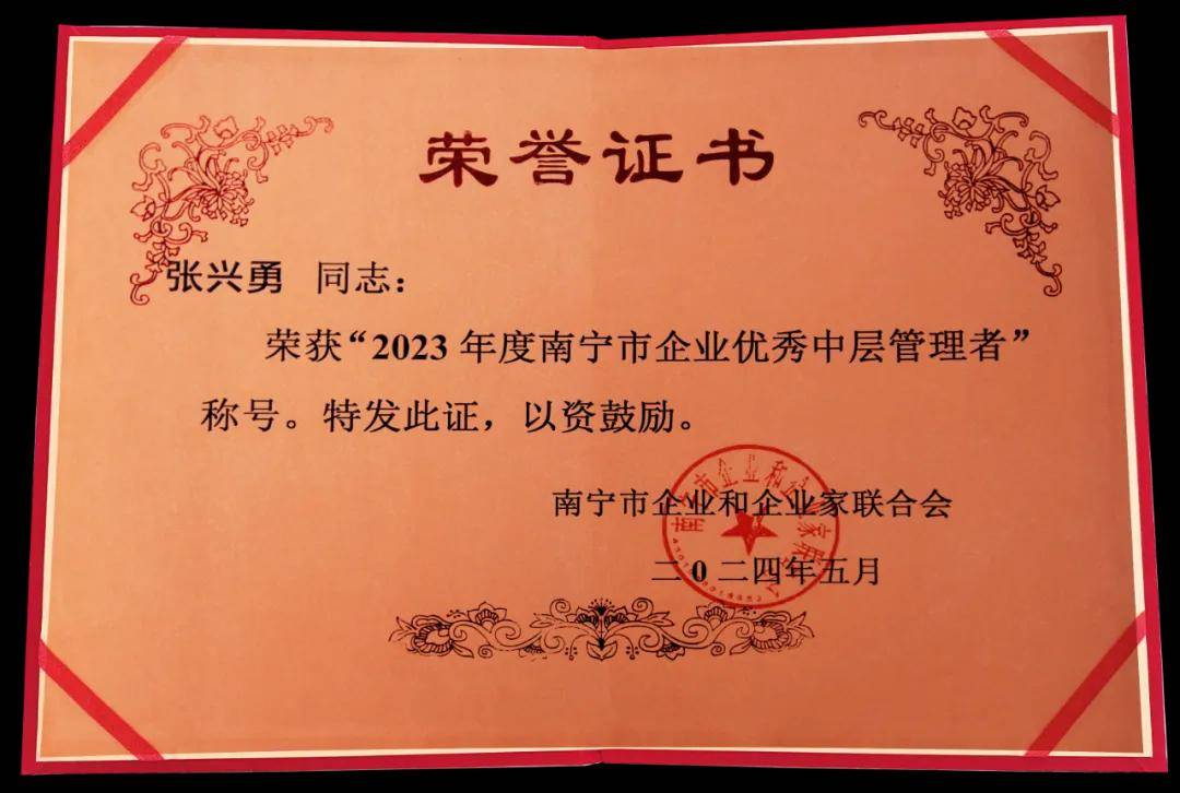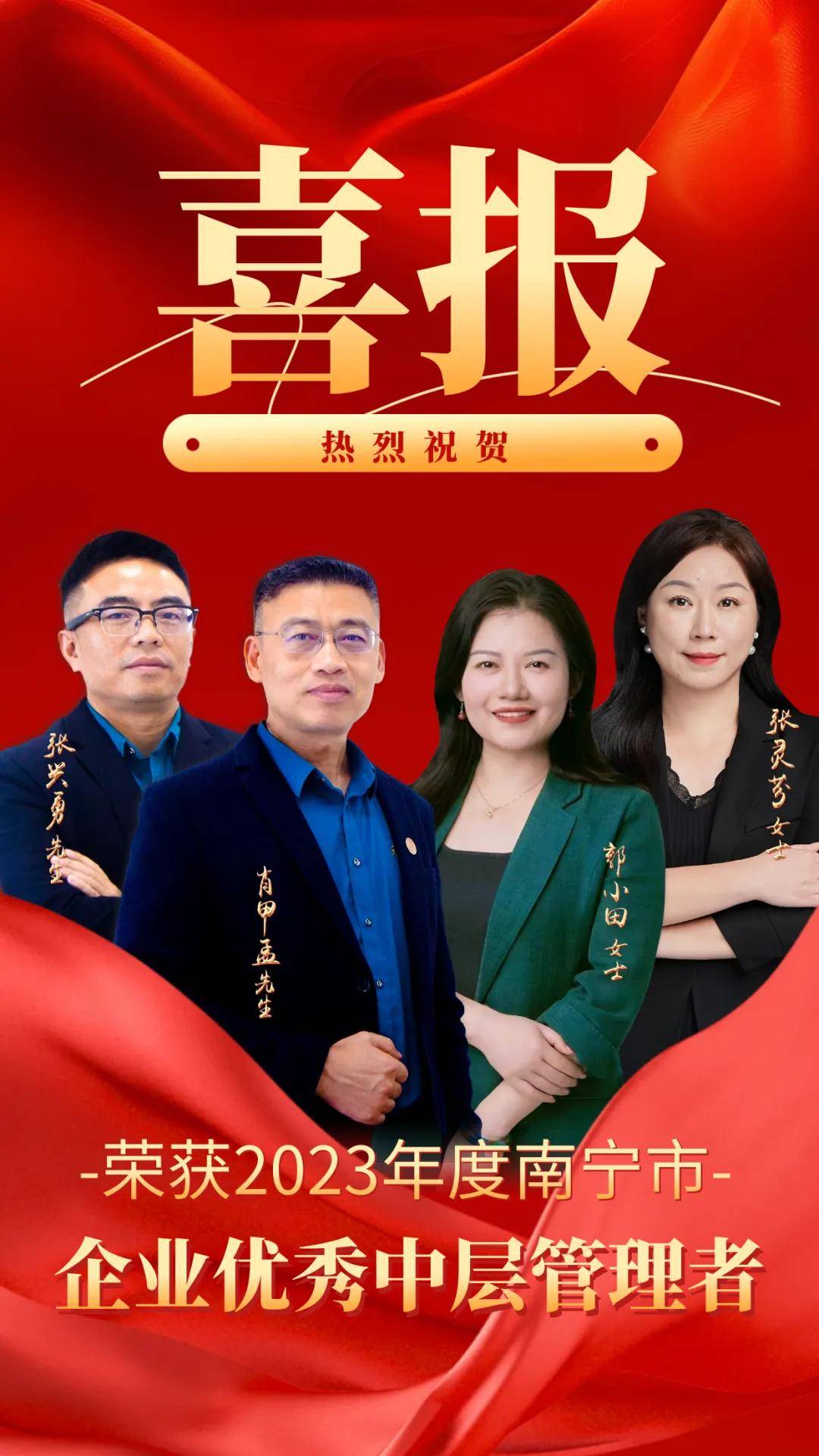 喜报!(中国)有限公司集团多位中层管理者荣获“2023年度南宁市企业优秀中层管理者”