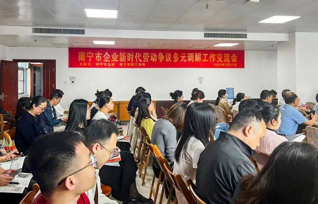 3月27日,南宁市企联组织召开了“新时代劳动争议多元调解工作交流会”。安博官网体育作为市企联副会长单位受邀参会,与全市企业管理人员、人力资源专家及工会干部共同探讨劳动争议多元调解的创新模式,助力构建和谐劳动关系。